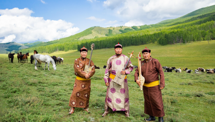 ALASH are masters of Tuvan throat singing (xöömei), a remarkable technique for singing multiple pitches at the same time. What distinguishes this gifted trio from earlier generations of Tuvan throat singers is the subtle infusion of modern influences into their traditional music. One can find complex harmonies, western instruments, and contemporary song forms in Alash’s music, but its overall sound and spirit remain decidedly Tuvan. Trained in traditional Tuvan music since childhood, the Alash musicians studied at Kyzyl Arts College just as Tuva was beginning to open up to the West. They formed a traditional ensemble and won multiple awards for traditional throat singing in international xöömei competitions, both as an ensemble and as individuals. At the same time, they paid close attention to new trends coming out of the West. They have borrowed new ideas that mesh well with the sound and feel of traditional Tuvan music, but they have never sacrificed the integrity of their own heritage in an effort to make their music more hip.