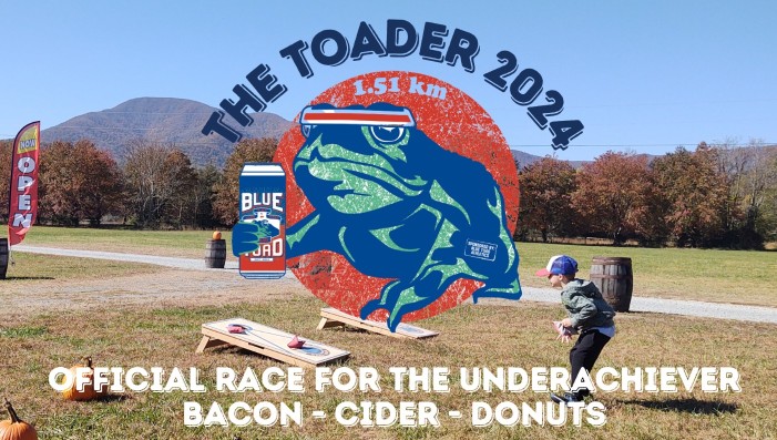 We feel that Thanksgiving is all about family, fun, food & drink! So we’re doing this race thing with a twist! Join us the Saturday after Turkey Day with your crew, and enjoy a “challenging”, eating, running, drinking, 1.51 Km race on Blue Toad Hard Cider’s stunning 27 acre farm surrounded by 360* views of the Blue Ridge!