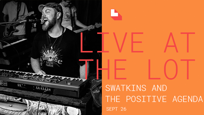 Live at The Lot on Sunday, September 26: Swatkins & the Positive Agenda. Steve Watkins (Swatkins) is a ginger-bearded smiley keyboard guy. His music generally sounds like a good time. This exceedingly positive individual is a songwriter, producer, singer, multi-instrumentalist, and a master of the talkbox, an old-school analog effect using his larynx and a vinyl tube to shape the sound of his keyboard.