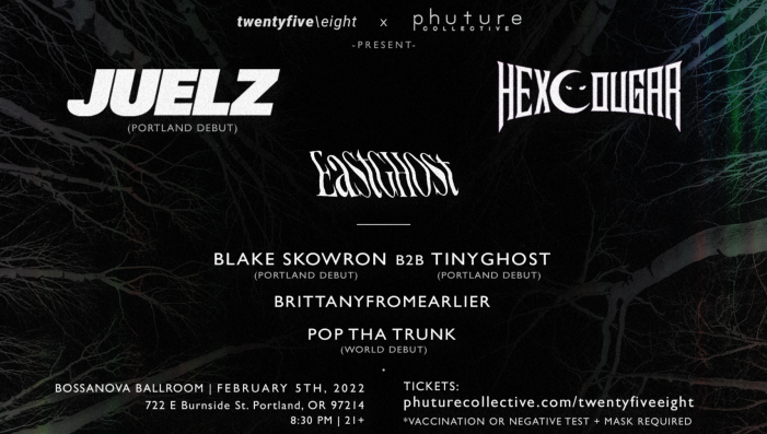 Don’t miss the Portland debut of Juelz and the return of Hex Cougar with Portland treasure, EASTGHOST, featuring a never before seen back to back from underground masterminds Blake Skowron & Tinyghost.